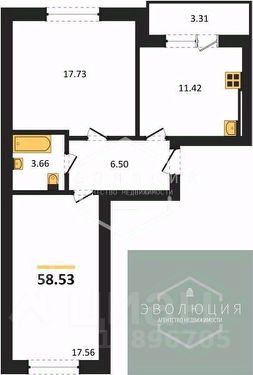58,53 м²