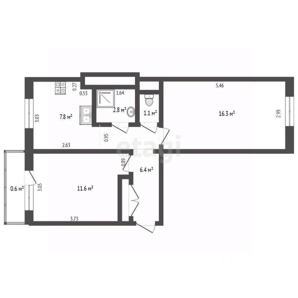 Квартира с центральным отоплением на 4 этаже общей площадью 46,2 м2.