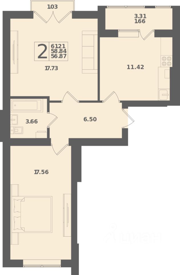 Общая площадь61,21 м²