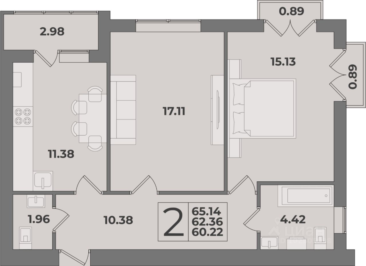 Общая площадь65,14 м²