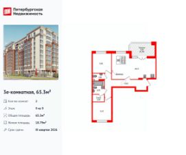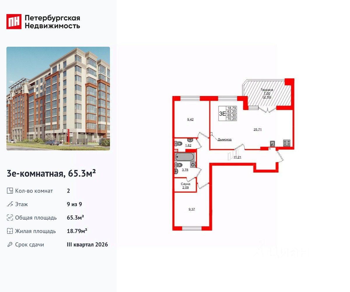 Удобная, классическая, функциональная европланировка, большая кухня-гостиная 25.71 м², просторная прихожая 11.21 м². Общая площадь квартиры - 65.3 м², жилая 18.79 м², высота потолка 3 м.