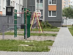 Во дворе детская и спортивная площадка с безопасным покрытием. На входе в подъезд установлен домофон, имеется система видеонаблюдения.