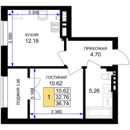 Общая площадь36,74 м²