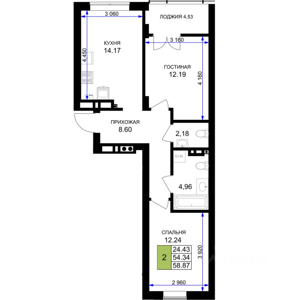 Общая площадь60,2 м²