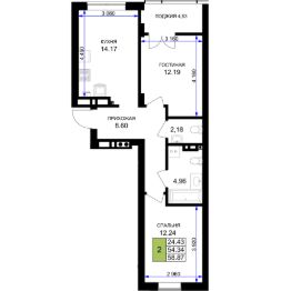 Продается 2-комн. квартира, 60,2 м²
