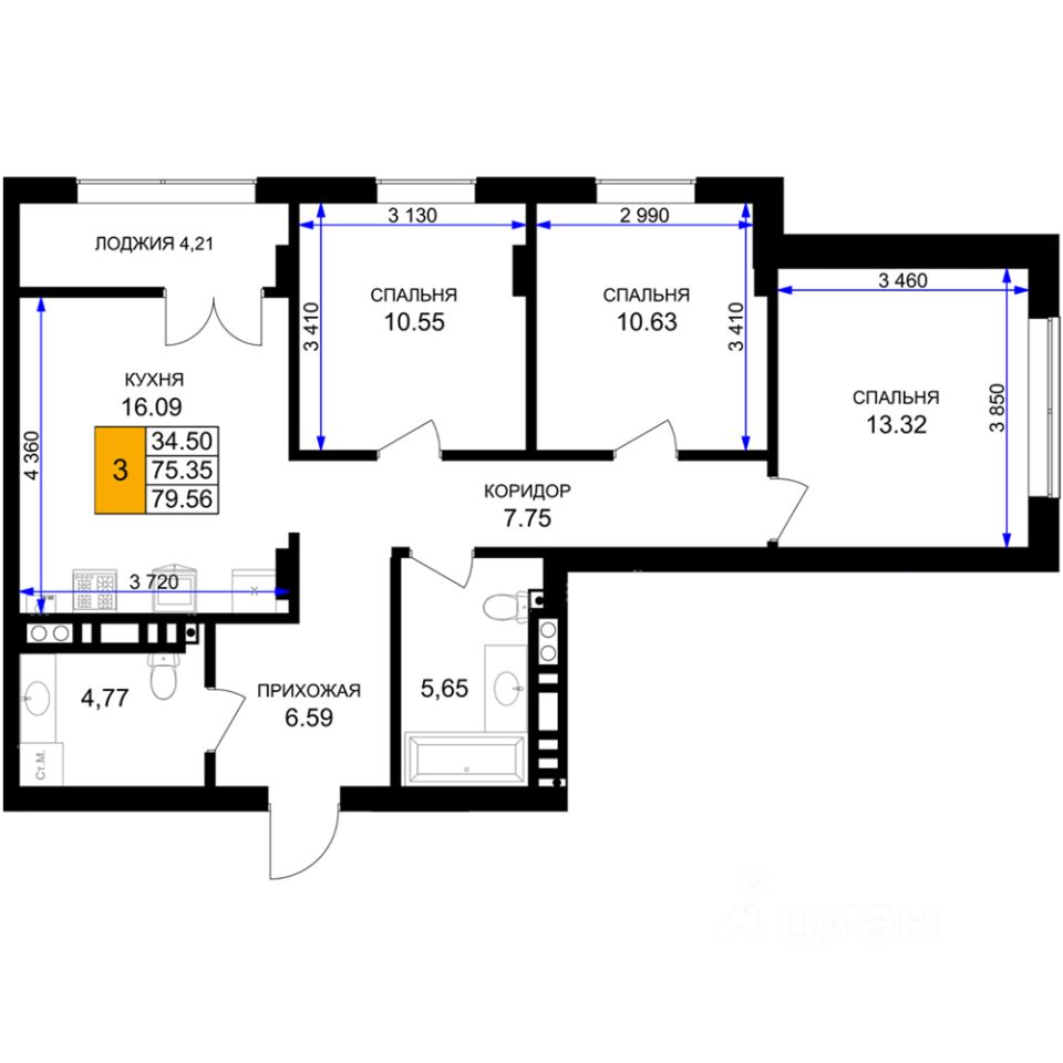 Трехкомнатная квартира — это просторное и светлое жилье, созданное для жизни без компромиссов. Три просторные изолированные комнаты позволяют каждому члену семьи иметь свое личное пространство: спальня, детская, кабинет или гостиная — все организуется легко и удобно. Благодаря увеличенному остеклению, интерьер наполняется естественным светом, визуально расширяется и создает ощущение легкости и открытости. Лоджия не только дополняет квартиру практичной зоной для хранения или отдыха.