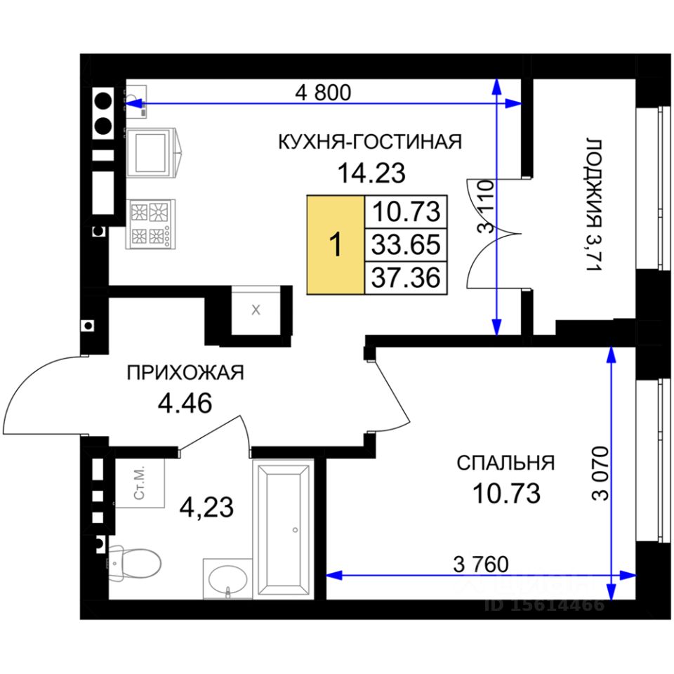 Однокомнатная квартира — это гармоничное сочетание современной планировки, естественного света и продуманной функциональности. Пространство легко зонируется на спальную и гостиную зоны, а просторная кухня с возможностью размещения полноценной обеденной группы становится центром домашнего уюта и встреч с близкими. Лоджия, выходящая из жилой зоны, расширяет полезную площадь: здесь можно организовать рабочий уголок, мини-оранжерею или уютное место для отдыха с чашкой кофе утром.
