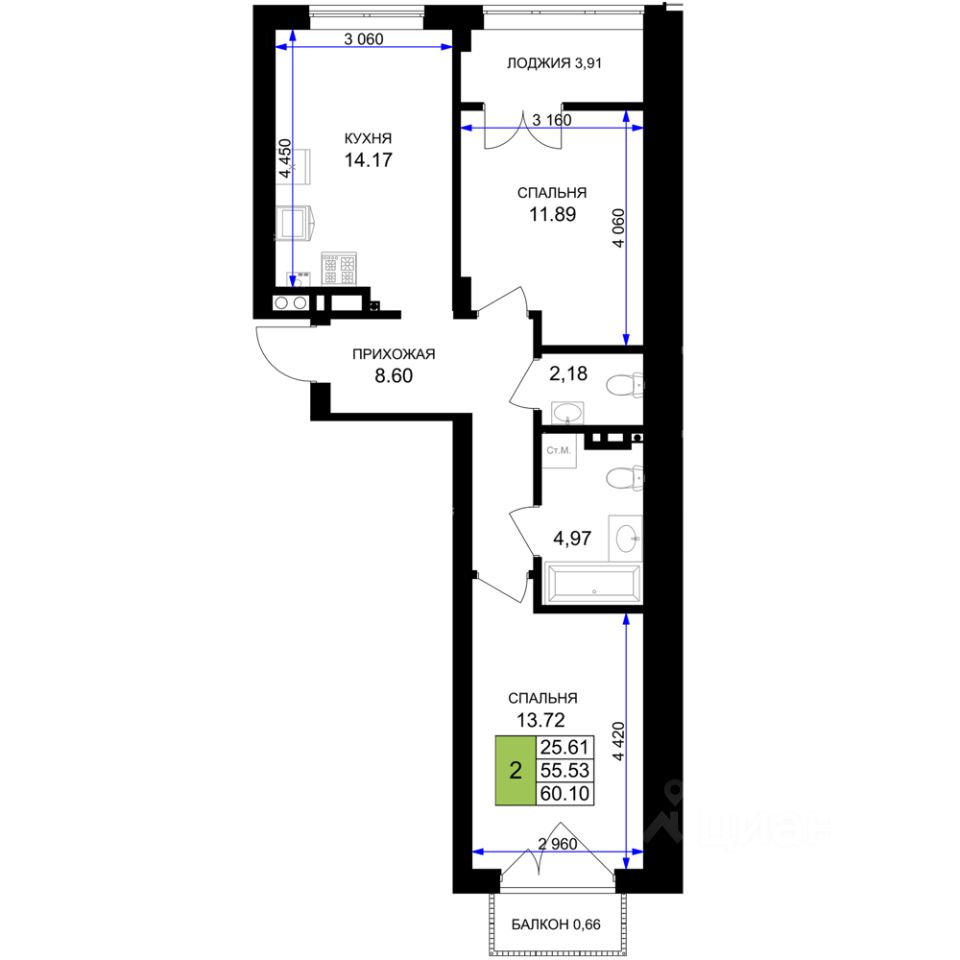 Общая площадь60,1 м²