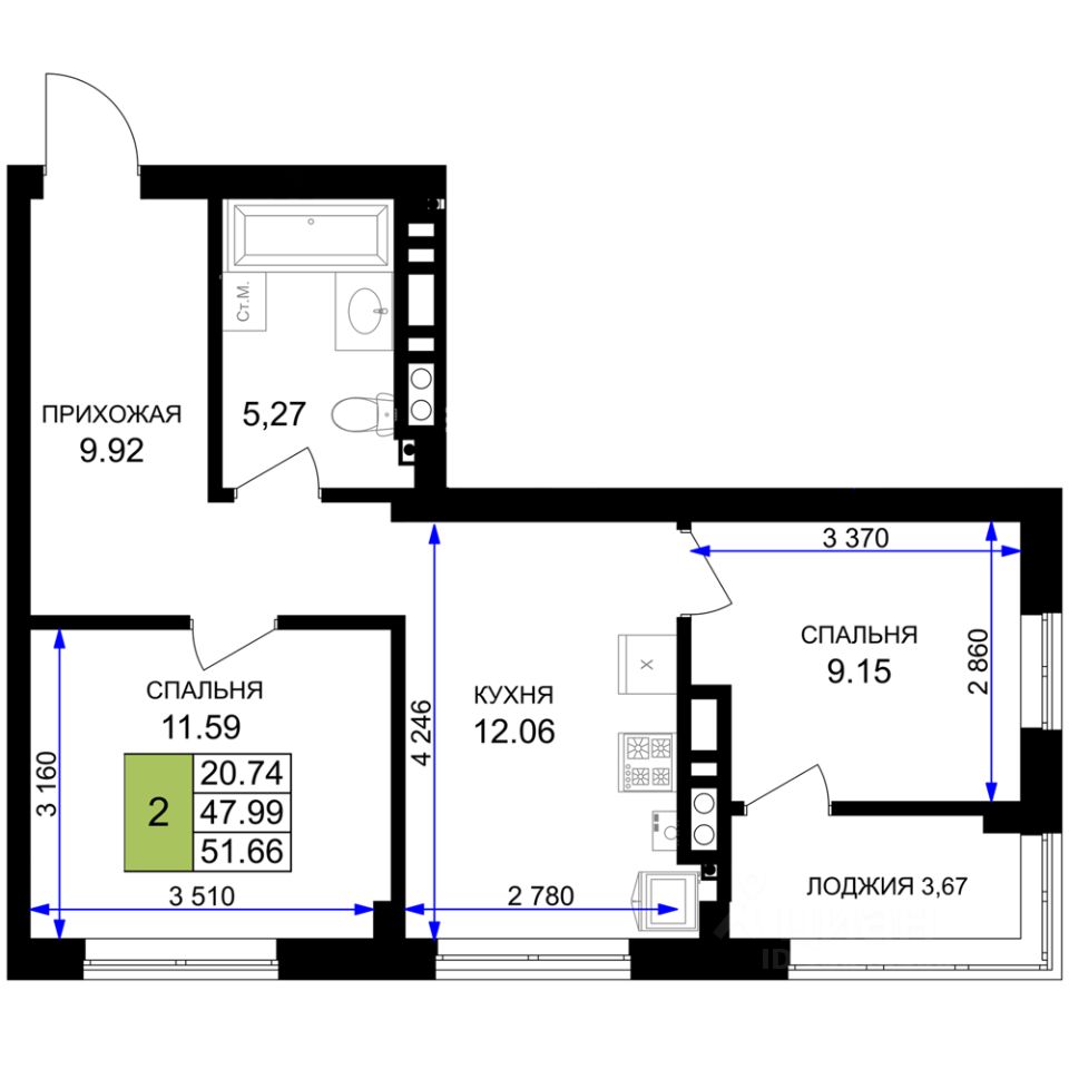 Двухкомнатная квартира — это продуманное пространство для комфортной жизни всей семьи. Две изолированные комнаты обеспечивают приватность и гибкость в зонировании: здесь легко разместить спальню, детскую, кабинет или гостиную — в зависимости от ваших потребностей. Просторная кухня вмещает полноценную обеденную зону и дополняется встроенной кладовой, где удобно хранить продукты, бытовую технику или кухонную утварь, сохраняя порядок в основной зоне. Лоджия добавляет функциональную площадь — для хранения, сушки белья или создания уютного уголка отдыха.