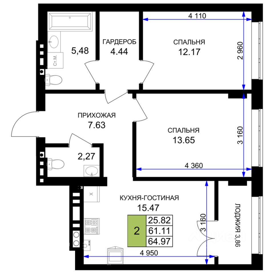 Двухкомнатная квартира — это продуманное пространство для комфортной жизни всей семьи. Две изолированные комнаты обеспечивают приватность и гибкость в зонировании: здесь легко разместить спальню, детскую, кабинет или гостиную — в зависимости от ваших потребностей. Просторная кухня вмещает полноценную обеденную зону и дополняется встроенной кладовой, где удобно хранить продукты, бытовую технику или кухонную утварь, сохраняя порядок в основной зоне. Лоджия добавляет функциональную площадь — для хранения, сушки белья или создания уютного уголка отдыха.