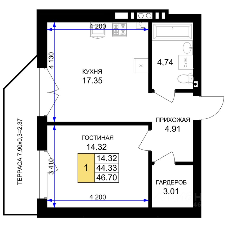 Однокомнатная квартира — это гармоничное сочетание современной планировки, естественного света и продуманной функциональности. Пространство легко зонируется на спальную и гостиную зоны, а просторная кухня с возможностью размещения полноценной обеденной группы становится центром домашнего уюта и встреч с близкими. Лоджия, выходящая из жилой зоны, расширяет полезную площадь: здесь можно организовать рабочий уголок, мини-оранжерею или уютное место для отдыха с чашкой кофе утром.