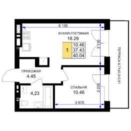 Продается 1-комн. квартира, 40,04 м²
