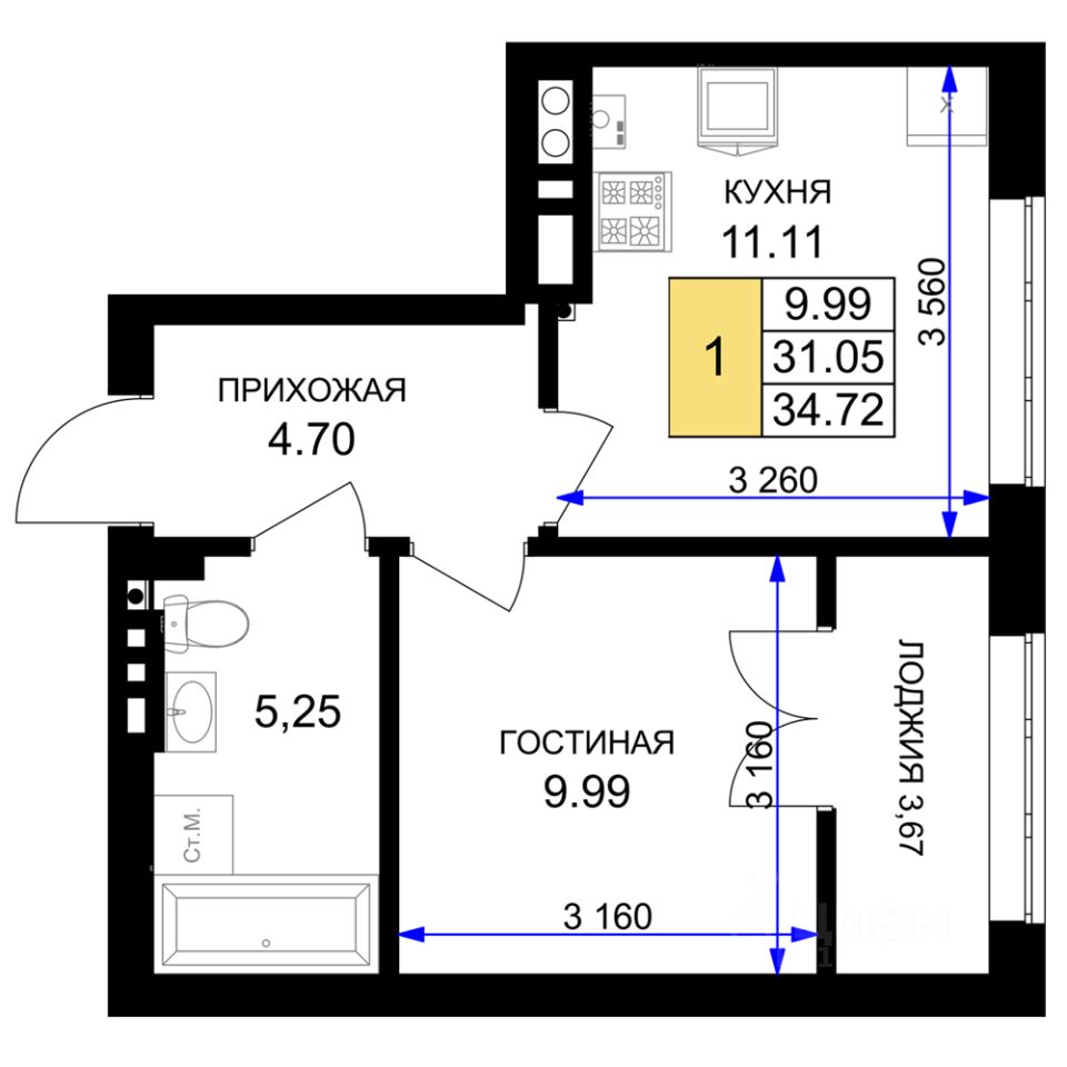 Однокомнатная квартира — это гармоничное сочетание современной планировки, естественного света и продуманной функциональности. Пространство легко зонируется на спальную и гостиную зоны, а просторная кухня с возможностью размещения полноценной обеденной группы становится центром домашнего уюта и встреч с близкими. Лоджия, выходящая из жилой зоны, расширяет полезную площадь: здесь можно организовать рабочий уголок, мини-оранжерею или уютное место для отдыха с чашкой кофе утром.