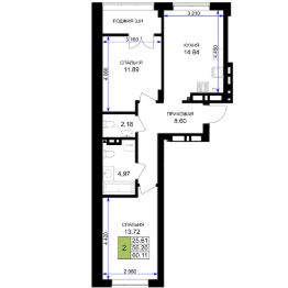 Продается 2-комн. квартира, 60,9 м²
