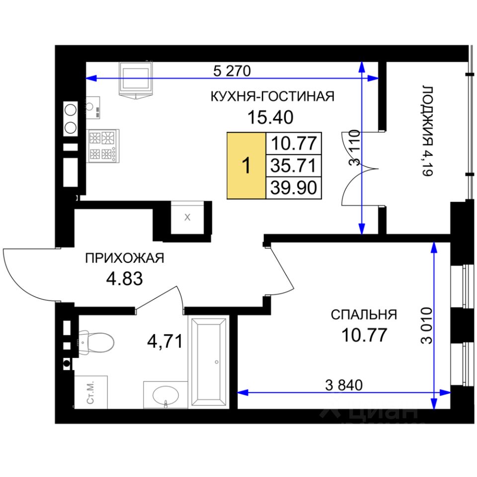 Однокомнатная квартира — это гармоничное сочетание современной планировки, естественного света и продуманной функциональности. Пространство легко зонируется на спальную и гостиную зоны, а просторная кухня с возможностью размещения полноценной обеденной группы становится центром домашнего уюта и встреч с близкими. Лоджия, выходящая из жилой зоны, расширяет полезную площадь: здесь можно организовать рабочий уголок, мини-оранжерею или уютное место для отдыха с чашкой кофе утром.