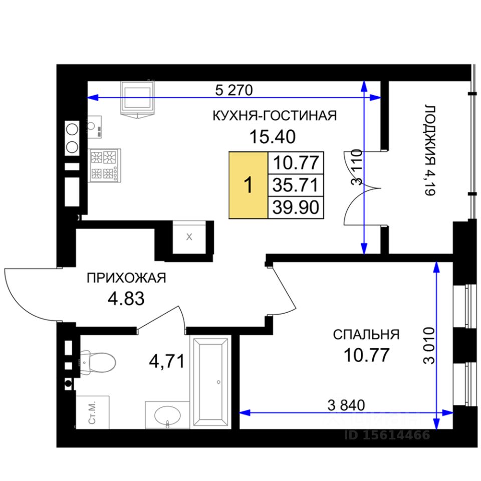 Однокомнатная квартира — это гармоничное сочетание современной планировки, естественного света и продуманной функциональности. Пространство легко зонируется на спальную и гостиную зоны, а просторная кухня с возможностью размещения полноценной обеденной группы становится центром домашнего уюта и встреч с близкими. Лоджия, выходящая из жилой зоны, расширяет полезную площадь: здесь можно организовать рабочий уголок, мини-оранжерею или уютное место для отдыха с чашкой кофе утром.
