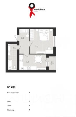 Общая площадь квартиры 43,3.м. (Площадь указана общая с лоджией без понижающего коэффициента), расположена в современном жилом комплексе, рядом с парковой зоной рядом с благоустроенным озером Шанхайское, в соседнем доме расположены пункты выдачи OZON и WB. Кухня 11,4 кв.м, лоджия 2,2 кв.м, комната: 15,7 кв.м, санузел - 6,5 кв.м (совмещенный), коридор 6,8 кв.м.