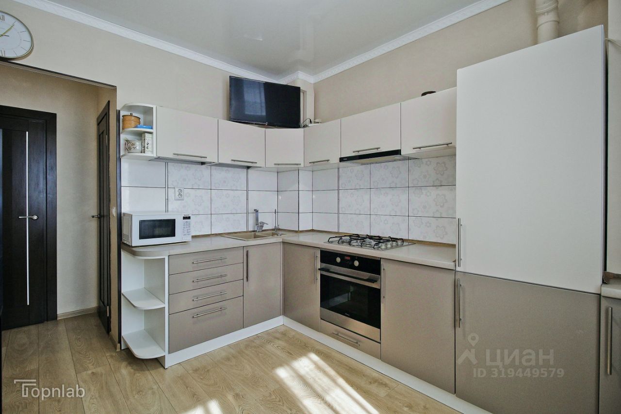 Общая площадь 77.55 м2, просторные комнаты 20.68, 12.6 и 13.6 м2, кухня 10 м2. Квартира расположена на 2 этаже 3- этажного дома 2013 года постройки.