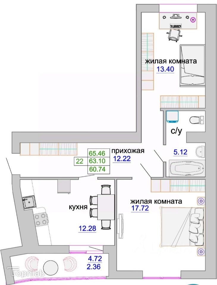 - общая площадь 65 кв.м