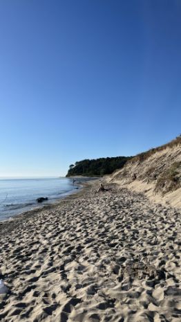 Пляж с белоснежным и мелким песочком , который первым в России был награжден Голубым флагом.