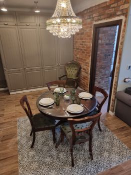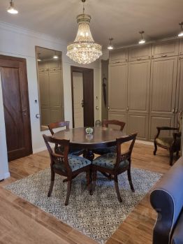 Выполнен качественный дизайнерский ремонт в сентябре 2022 года. Автономное газовое отопление, кондиционер. По всей квартире сделан теплый водяной пол с автоматическим электронным управлением из каждой комнаты. Стоит новая немецкая сантехника и бытовая техника Kaiser. Посудомоечная машина Electrolux. Антикварная столовая группа и кресло из натурального дуба. Квартира полностью мебелирована и укомплектована всем необходимым.