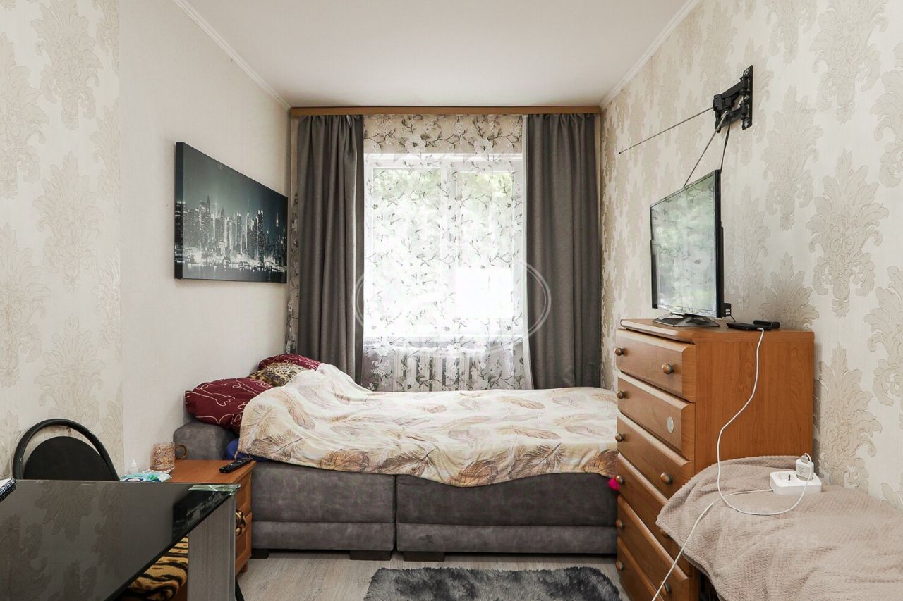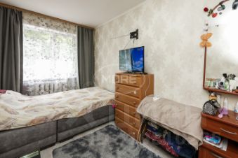 Комната светлая и уютная, окна выходят во двор. Внутри сделан косметический ремонт, что позволит новым владельцам сразу заселиться и начать жить. Совмещённый санузел находится в хорошем состоянии.