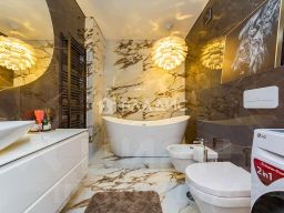 В апартаментах сделан дизайнерский ремонт, полностью новый.