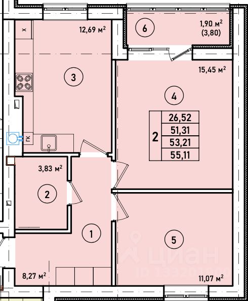 Продаётся 2-комнатная квартира в строящемся доме (Дом 1), срок сдачи: III-кв. 2026, общей площадью 53.21 кв.м., на 5 этаже. Современный жилой 7-ми этажный дом в сердце города.