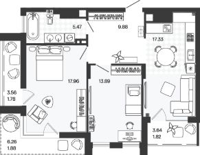 Площадь кухни17,3 м²