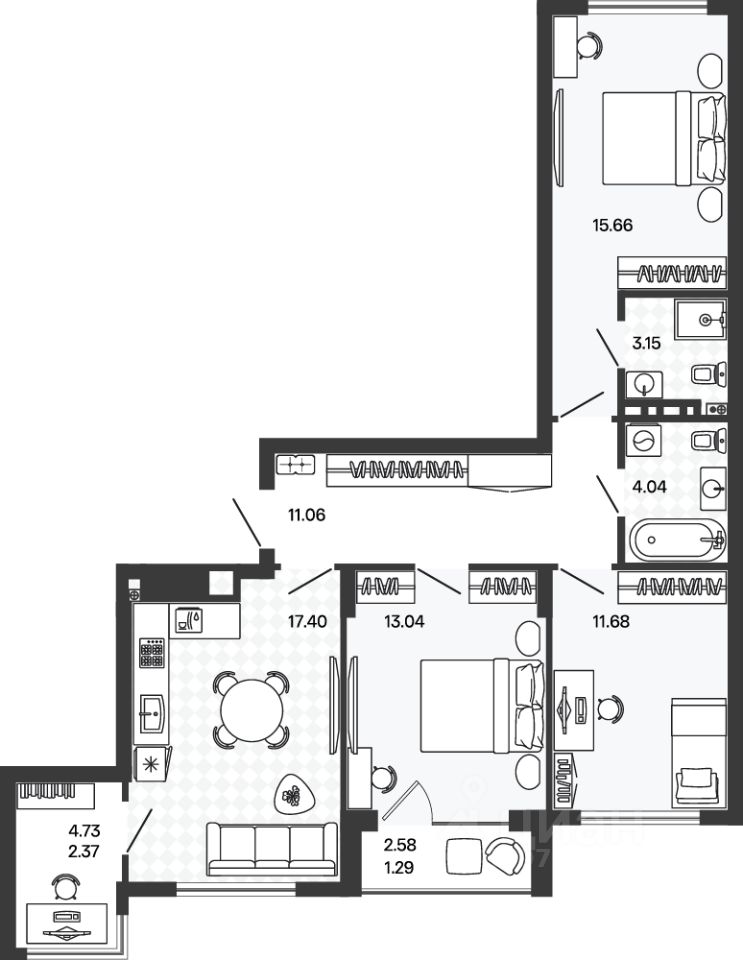 17,1 м²