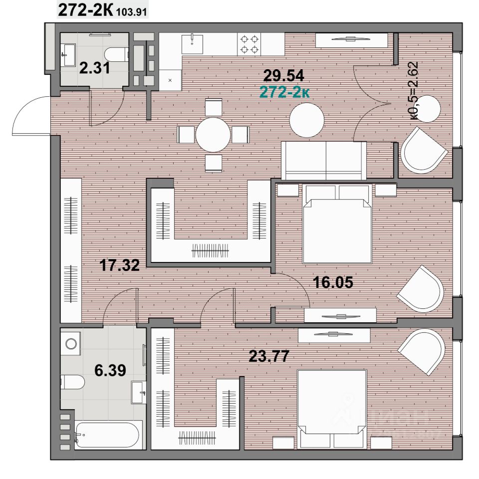 Продаётся 2-комнатная квартира в строящемся доме (Дом 1, секция 8), срок сдачи: IV-кв. 2027, общей площадью 98 кв.м., на 2 этаже. Новый жилой комплекс "Морская лагуна" от Специализированного застройщика "БСК" расположен в г. Зеленоградск на ул. Гагарина.