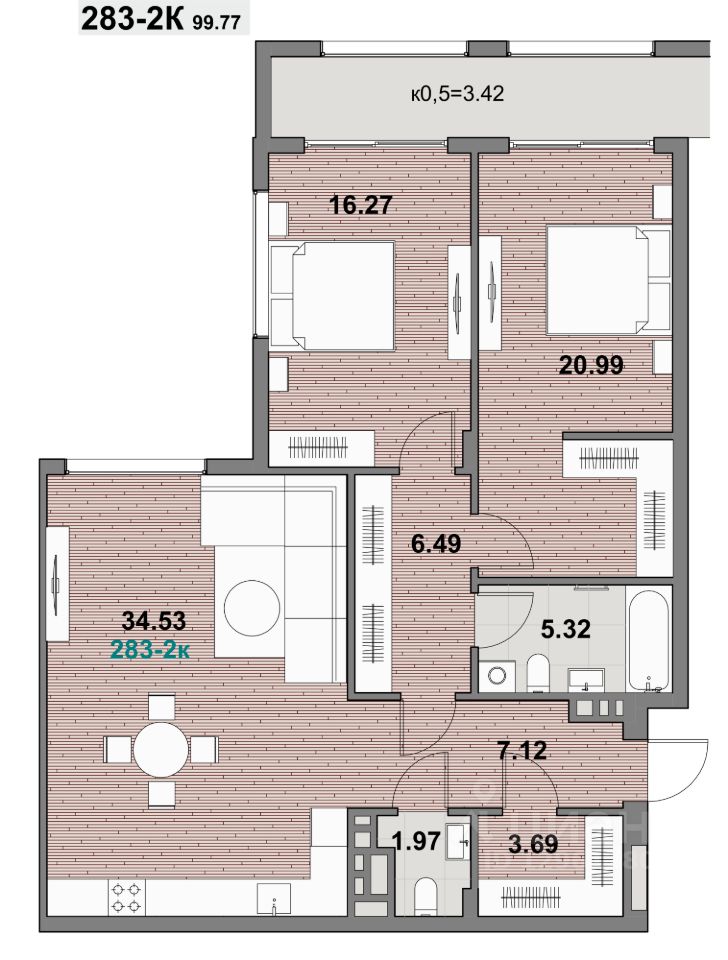 Продаётся 2-комнатная квартира в строящемся доме (Дом 1, секция 8), срок сдачи: IV-кв. 2027, общей площадью 99.77 кв.м., на 4 этаже. Новый жилой комплекс "Морская лагуна" от Специализированного застройщика "БСК" расположен в г. Зеленоградск на ул. Гагарина.