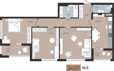 Продается комфортабельная 3 комнатная квартира 3 на Советском проспекте, 50 в ЖК "МОЙ ГОРОД"