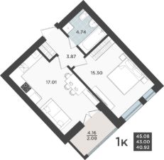 Продаётся 1-комнатная квартира в строящемся доме (Дом 1 очередь 8), срок сдачи: IV-кв. 2026, общей площадью 43 кв.м., на 2 этаже. Жилой квартал "Невский парк" - один из самых зеленых жилых кварталов Калининграда.