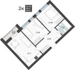 Продаётся 2-комнатная квартира в строящемся доме (Дом 1 очередь 8), срок сдачи: IV-кв. 2026, общей площадью 59.17 кв.м., на 1 этаже. Жилой квартал "Невский парк" - один из самых зеленых жилых кварталов Калининграда.