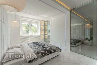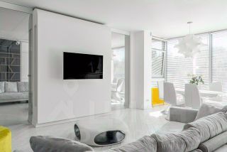 Вся мебель производства Италия: невероятно удобный диван от VALENTINI, кресла и пуф Ligne Roset из алькантары, кровать, прикроватные тумбы Очень вместительная гардеробная с выходом из спальни.