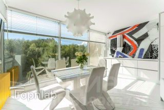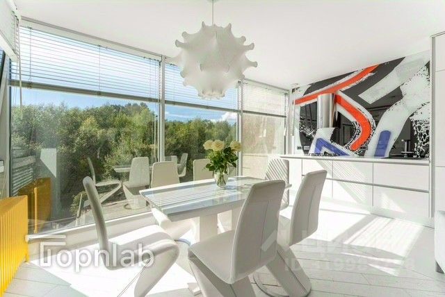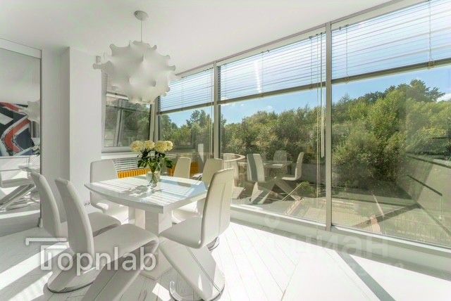 - В квартире полностью остаётся вся мебель и бытовая техника: техника премиум класса брендов AEG (Германия), холодильник Liebherr, стиральная, сушильная, посудомоечная машина Bosch, вытяжка профессиональной фирмы ELICA. Обеденный стол с возможностью увеличения до 8 персон и удобные стулья модели Swing (Германия) . Установлен дизайнерский (под цвет стекла) черный кондиционер Mitsubishi. Кухня Arrital (Италия ) - был выбран самый дорогой вариант фасадов ! Подвесные светильники MOOOI (Нидерланды) , потолочные- Германия, и самый дизайнерский элемент света - это подвесной светильник Taraxacum (конечно же, Италия :)