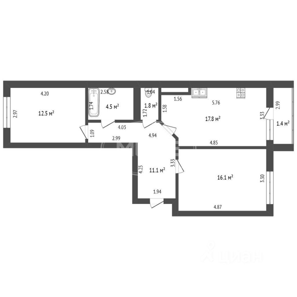 17,8 м²