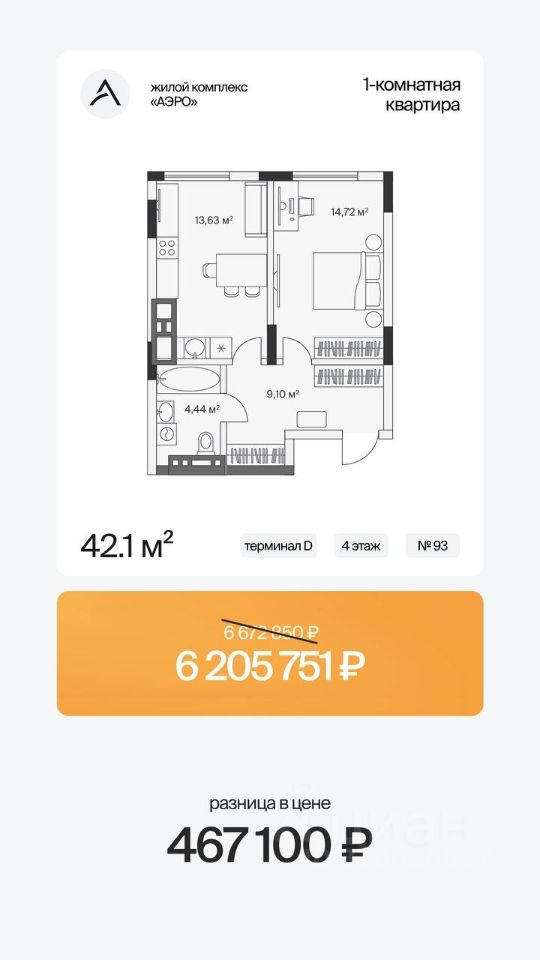 Предлагается к продаже 1-комнатная квартира в современном комплексе ЖК "АЭРО"