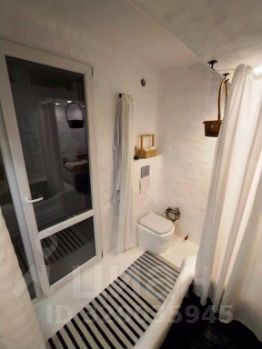 Санузел совмещенный, с эко-ванной. Установлена стиральная машинка. На полу теплый пол.