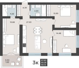 Продаётся 3-комнатная квартира в строящемся доме (Дом 2 очередь 8), срок сдачи: IV-кв. 2026, общей площадью 89.28 кв.м., на 4 этаже. Жилой квартал "Невский парк" - один из самых зеленых жилых кварталов Калининграда.