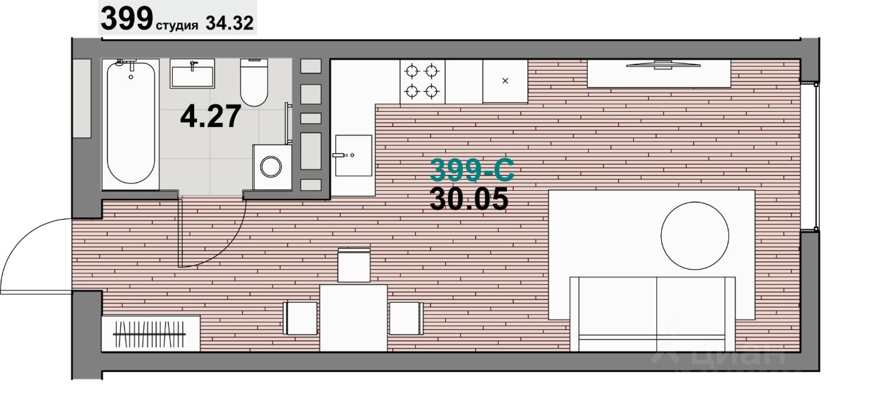 34,32 м²