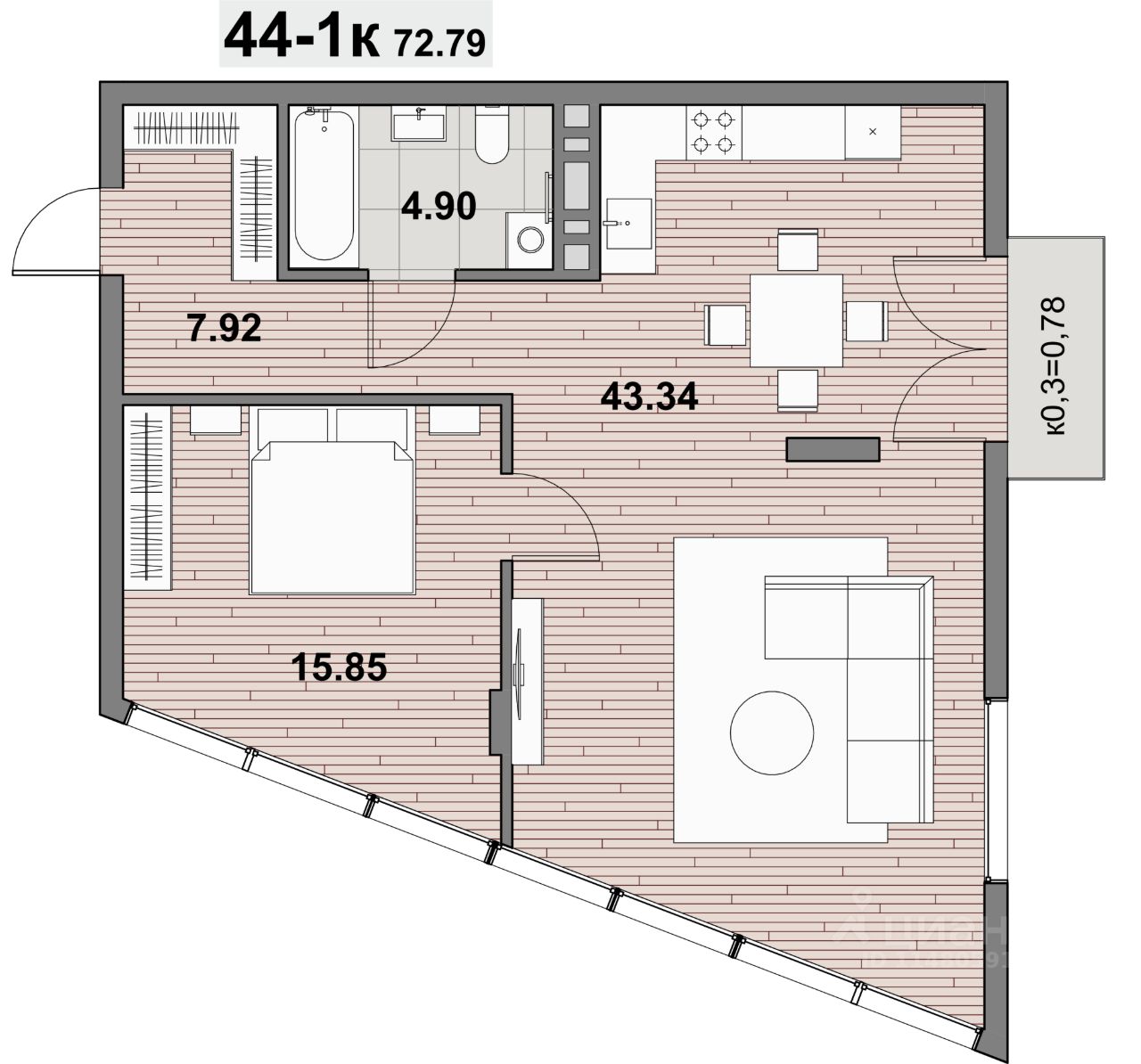 72,79 м²