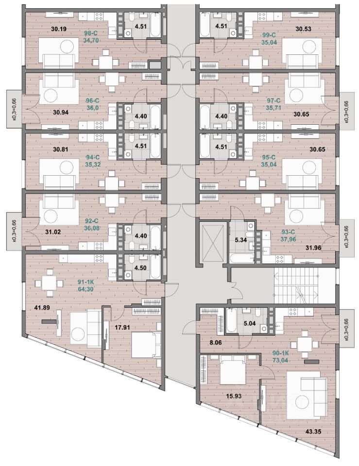 Продаётся 1-комнатная квартира в строящемся доме (Дом 1, секция 1), срок сдачи: I-кв. 2029, общей площадью 72.79 кв.м., на 5 этаже. Новый жилой комплекс "Морская лагуна" от Специализированного застройщика "БСК" расположен в г. Зеленоградск на ул. Гагарина.