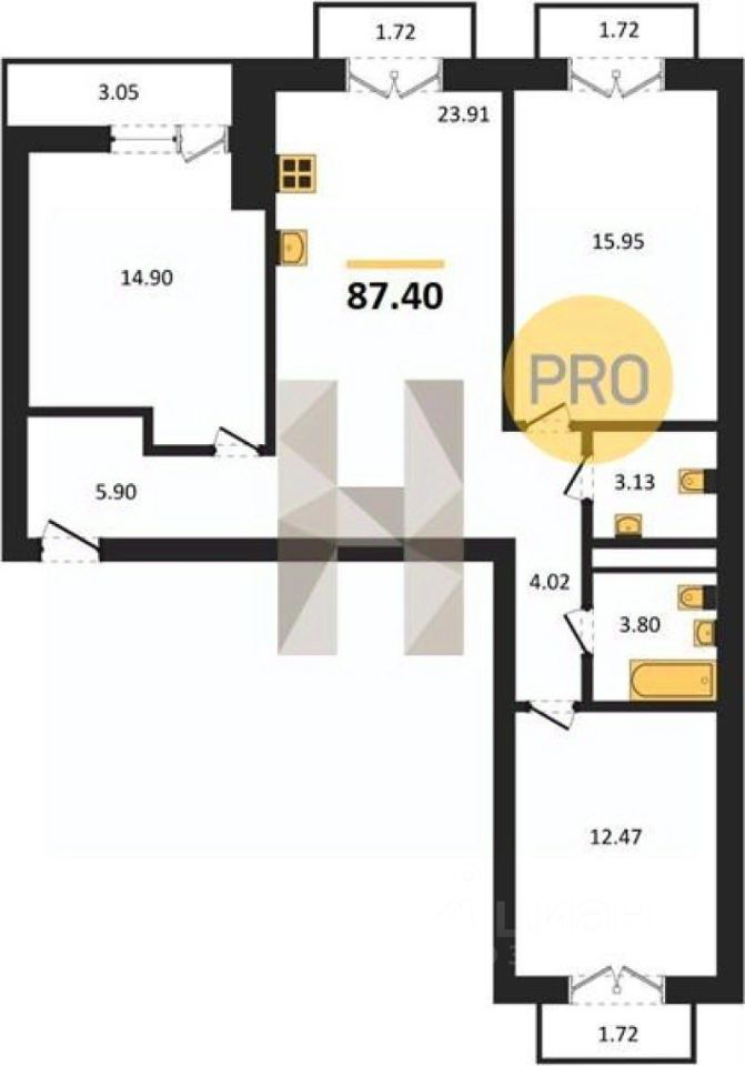 23,9 м²