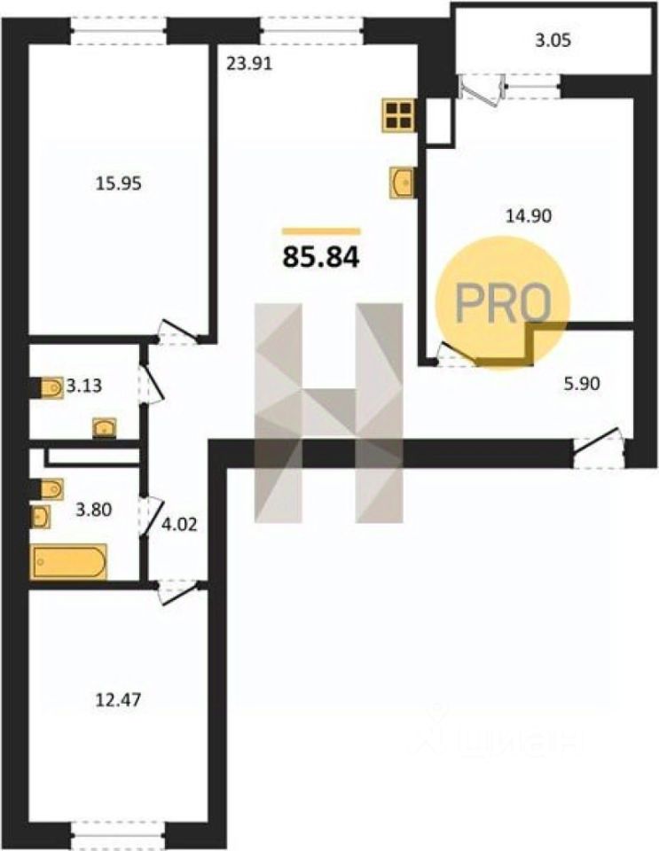Квартира: 3 к 85,84 кв.м., 1 этаж в комплексе Родина, 8 очередь, корп.8, сдача: 3кв. , этажей: 8, адрес Калининград г., Коммунистическая ул., , Застройщик: Модуль-Стройград. Номер в базе: J29620L24901