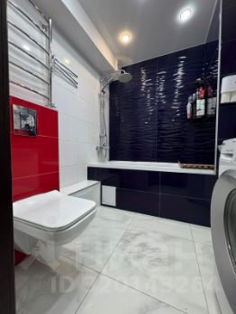 Санузел совмещённый, на стенах испанская плитка, потолок натяжной, установлена новая сантехника Grohe, AM PM (тропический душ.)