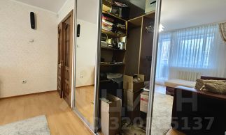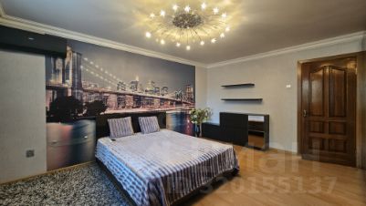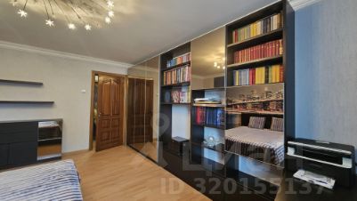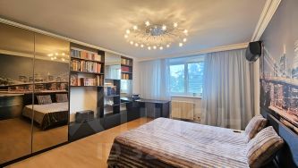 В зале установлены колонки для домашнего кинотеатра, а за зеркальными дверцами оборудована гардеробная 4,5 м. Проблем с хранением вещей не будет. Из зала выход на широкую застекленную лоджию с видом на зеленый двор.