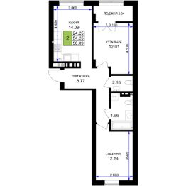 Продается 2-комн. квартира, 58,09 м²