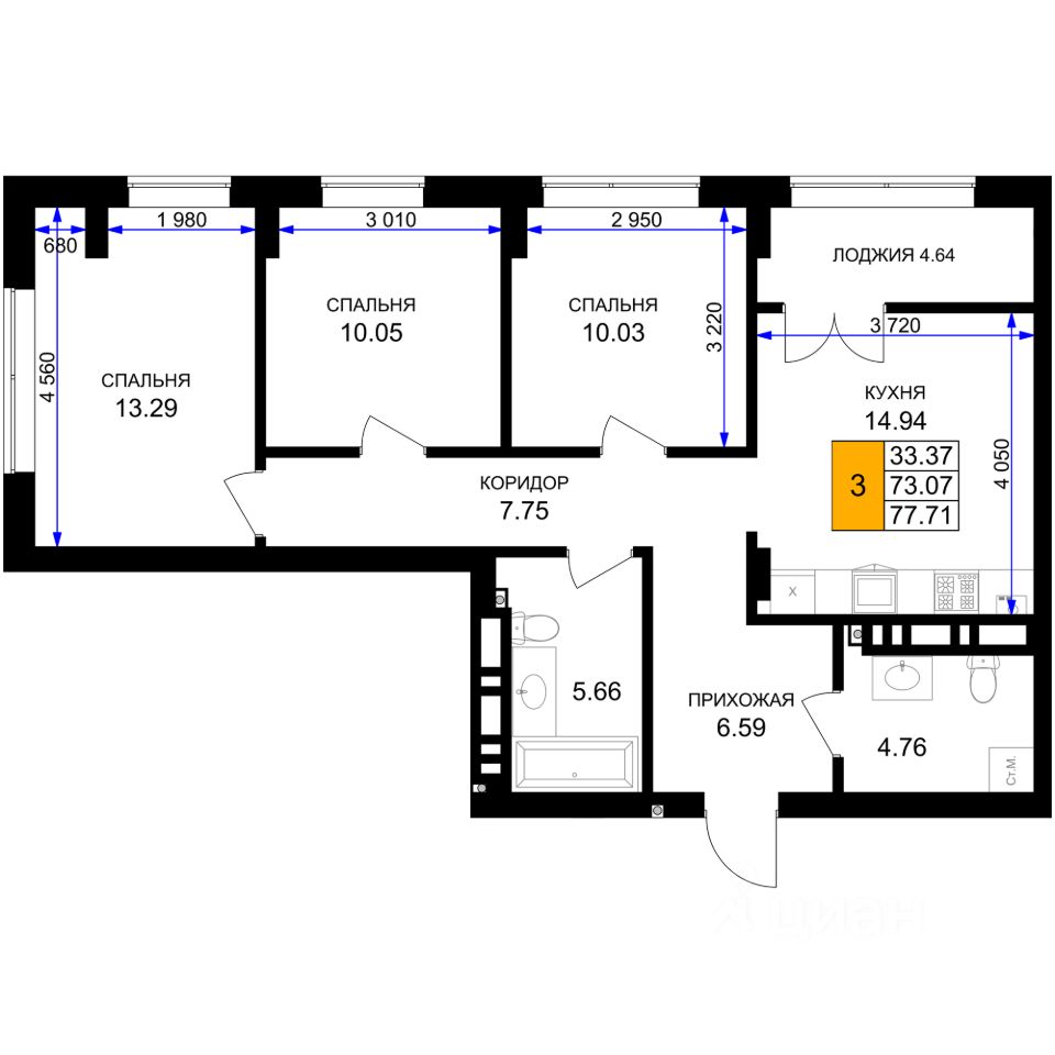 Трехкомнатная квартира — это просторное и светлое жилье, созданное для жизни без компромиссов. Три просторные изолированные комнаты позволяют каждому члену семьи иметь свое личное пространство: спальня, детская, кабинет или гостиная — все организуется легко и удобно. Благодаря увеличенному остеклению, интерьер наполняется естественным светом, визуально расширяется и создает ощущение легкости и открытости. Лоджия не только дополняет квартиру практичной зоной для хранения или отдыха.
